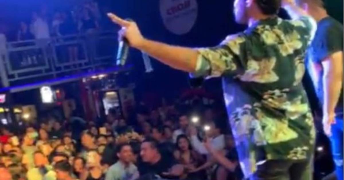 Un video reproducido en la red Instagram por el cantante muestra cuando estallan gritos aterrorizados de los asistentes pugnando por salir del local, en medio de llamados a la calma del músico.