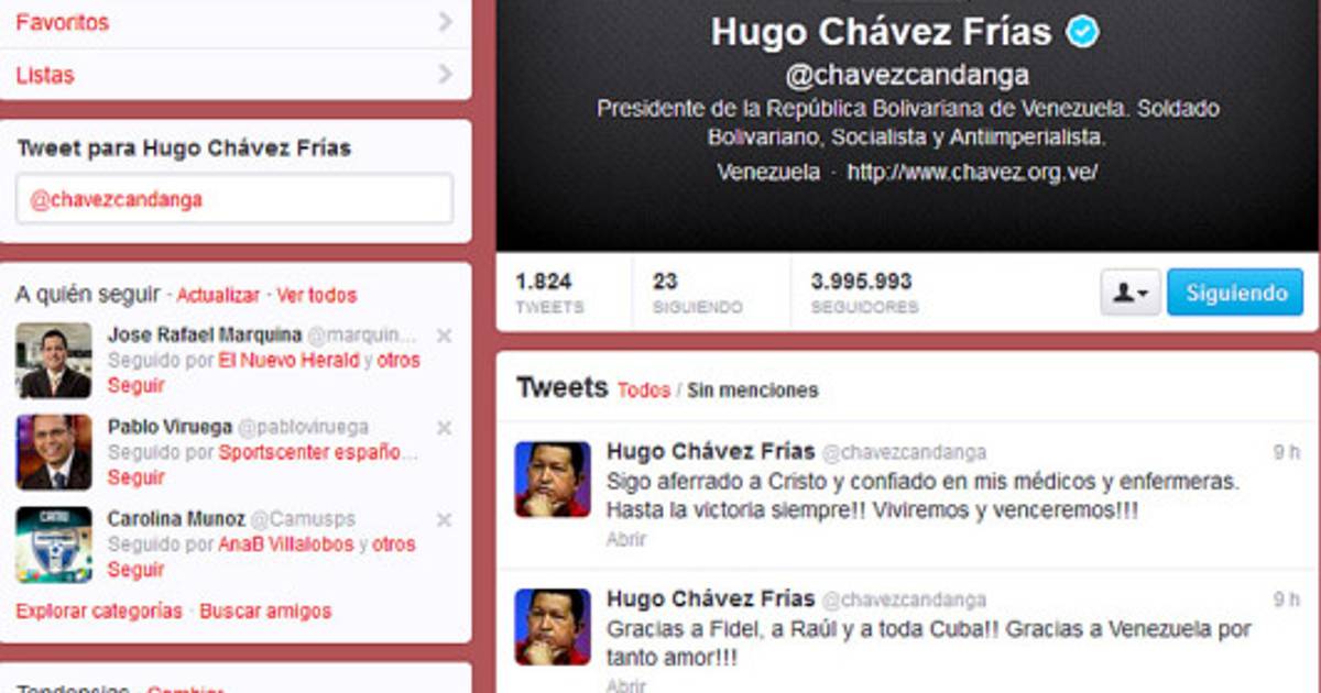 El mandatario siempre ha utilizado Twitter como un medio prioritario para comunicarse con los venezolanos y dar rienda suelta a su verbo mordaz y directo, especialmente durante sus anteriores periodos de convalecencia en La Habana, donde se ha tratado del cáncer.