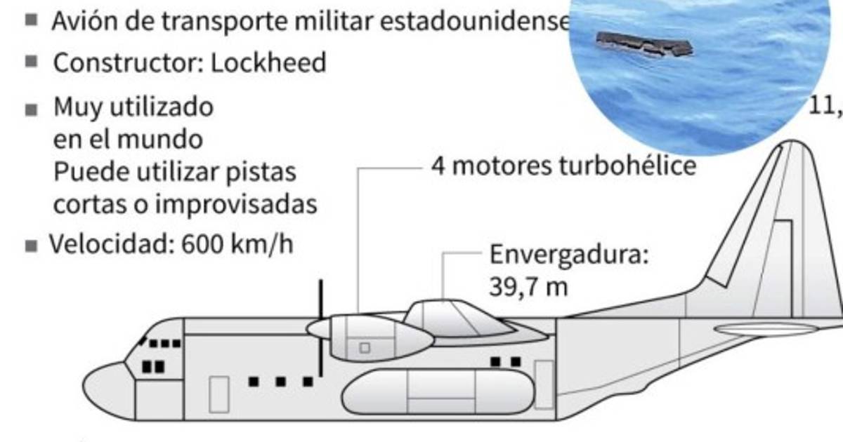 Los restos del avión, un Hércules C-130, comenzaron a ser encontrados a partir del miércoles en una de las áreas de búsqueda sobre el mar al sur del continente americano.