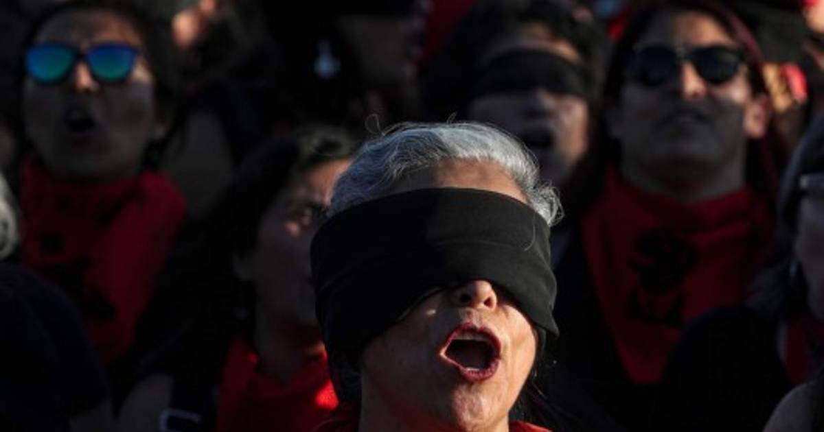 Vestidas de negro, la mayoría con los ojos vendados y pañuelos rojos o verdes al cuello, comenzaron a organizarse para reunirse afuera del estadio Nacional a principios de semana a través de las redes sociales, luego del gran impacto mundial de la performance creada por el colectivo feminista LasTesis, nacido en el puerto de Valparaíso (120 km al oeste de Santiago).