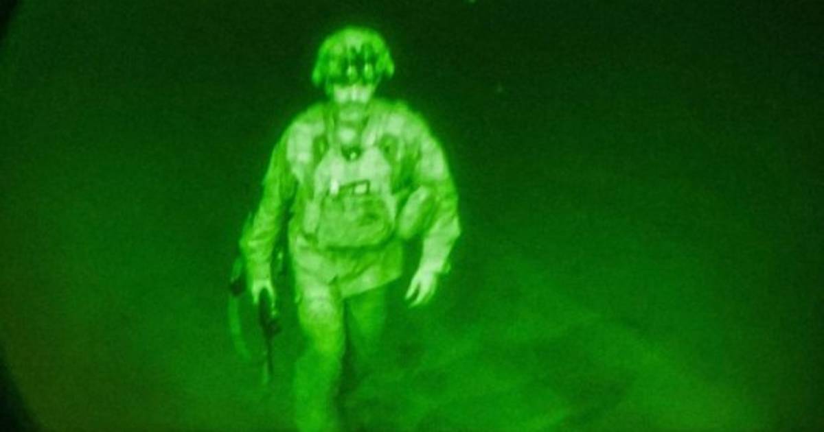 El Pentágono publicó en su cuenta de Twitter una imagen del comandante de la 82 División Aerotransportada del Ejército de Estados Unidos a punto de abordar un avión C-17, que despegó del Aeropuerto Internacional Hamid Karzai el 30 de agosto hacia la costa Este del país norteamericano y que puso fin a la guerra más larga de su historia.