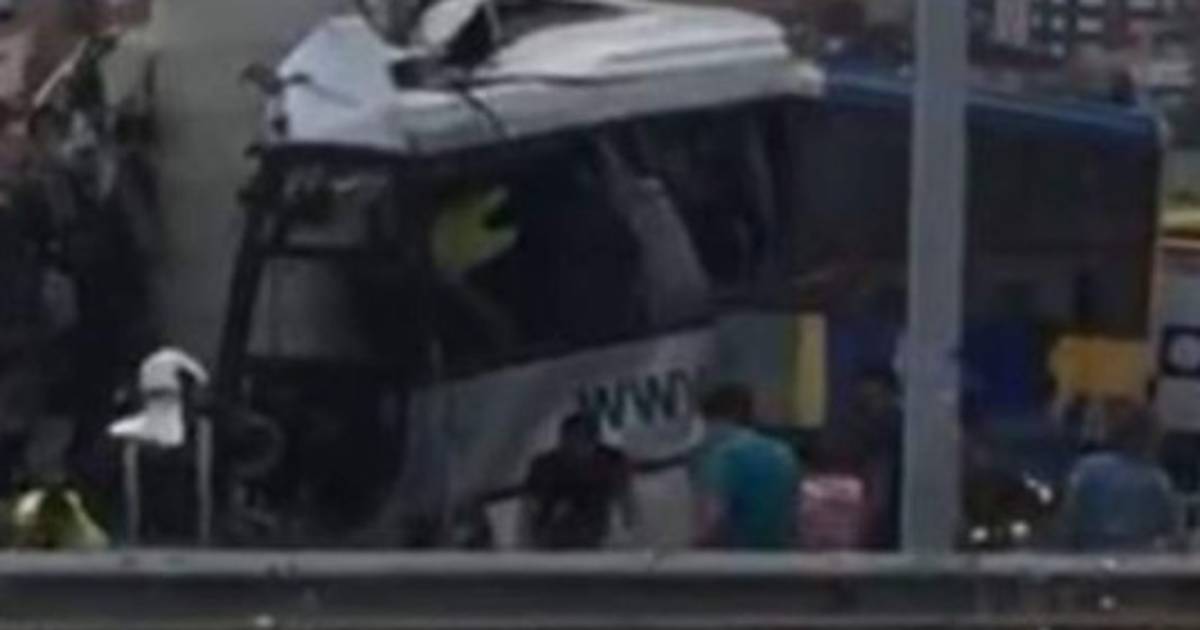 En las fotos difundidas en la prensa local podía verse la parte delantera del autobús cortada en dos por la violencia del impacto contra el pilar de un viaducto.