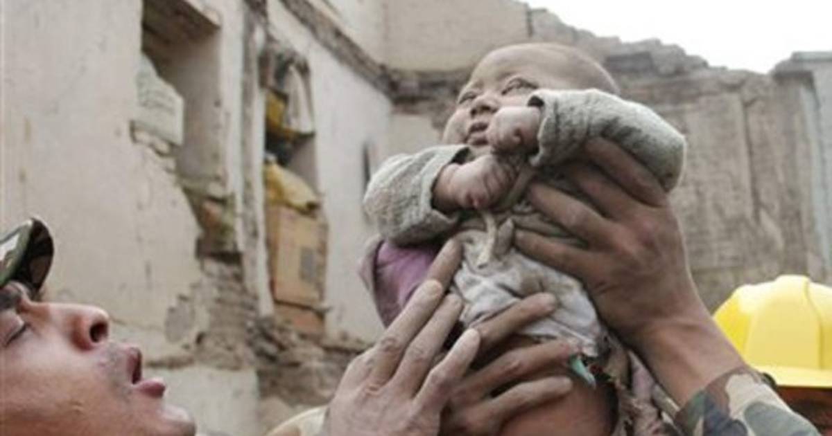 La propia familia de Thapa sufrió la destrucción de su casa en el pueblo de Bhaktapur, pero el fotógrafo dice que al escuchar el llanto del niño sólo pudo pensar: 'Por favor, Dios, ayúdalo'.