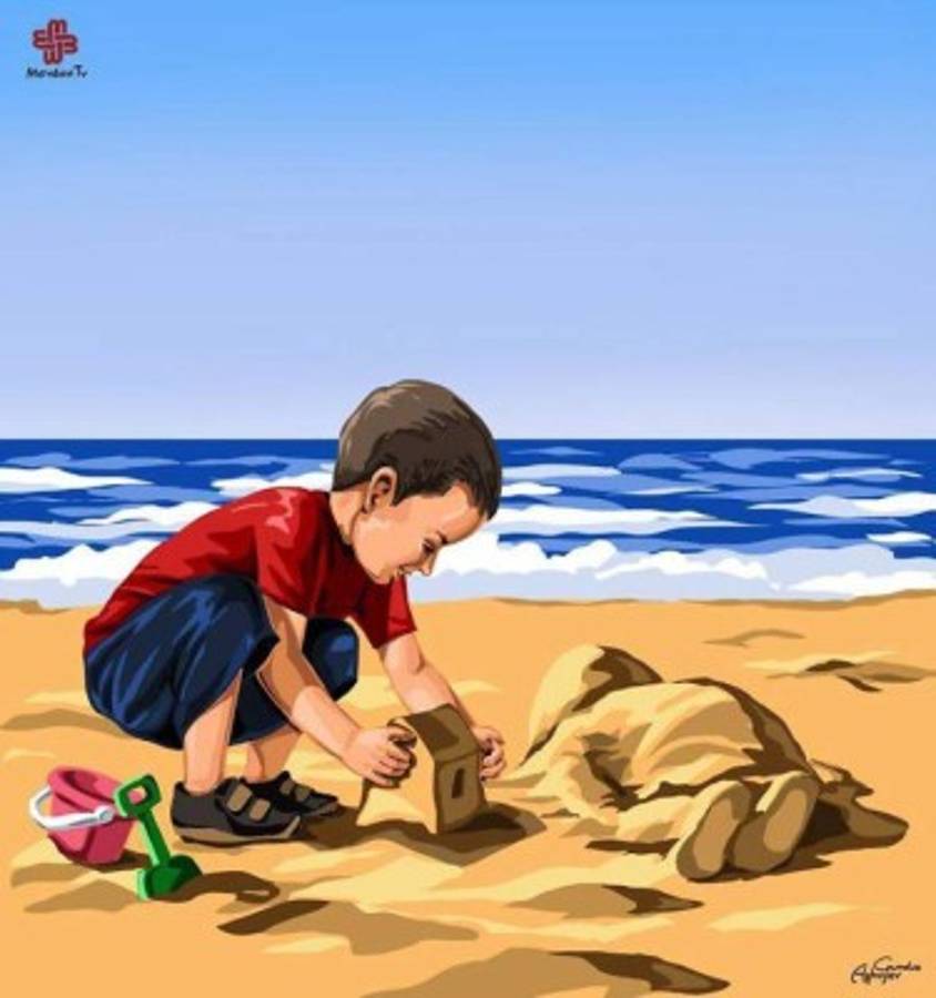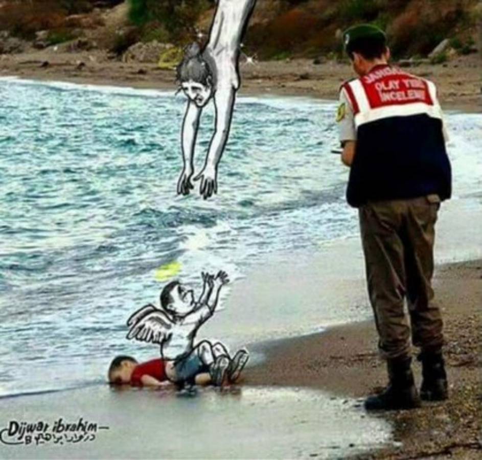 Es por esto que artistas alrededor del mundo están compartiendo homenajes increíbles a este pequeño, bajo los hashtags #KiyiyaVuranInsanlik (algo asó como la humanidad ha fracasado o naufragado) o HumanityWashedAshore (la humanidad apareció en la orilla).