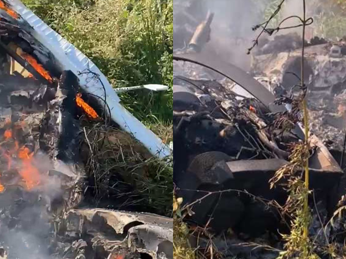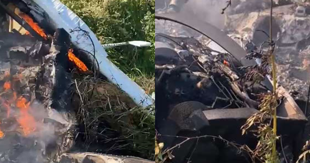 Imágenes del fuselaje incendiado entre matorrales fueron difundidas en redes sociales por pobladores de La Galancita (estado de Durango), en cuya pista se produjo la colisión contra una aeronave que se alistaba para despegar.