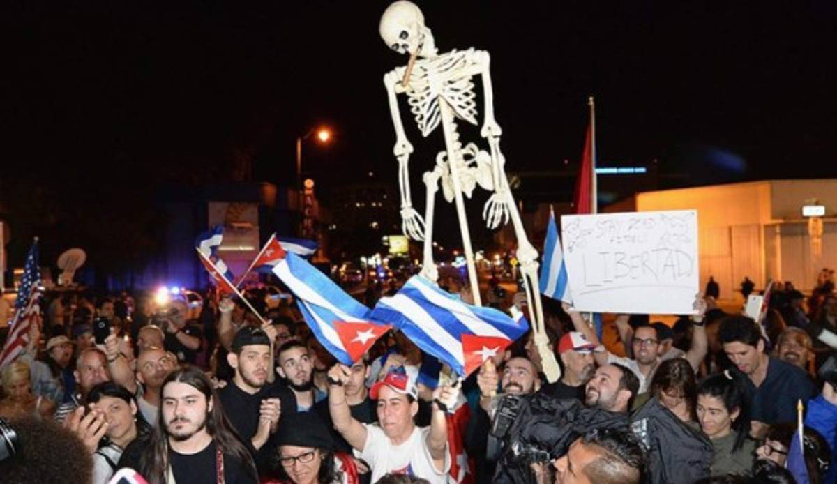 Con comentarios como 'demoró demasiado' o 'ahora falta Raúl', más de mil personas en Pequeña Habana y otro tanto en Hialeah -dos vecindarios de Miami que son bastión del exilio cubano-, cantaban, bailaban y se abrazaban para celebrar la muerte el viernes del líder de 90 años.