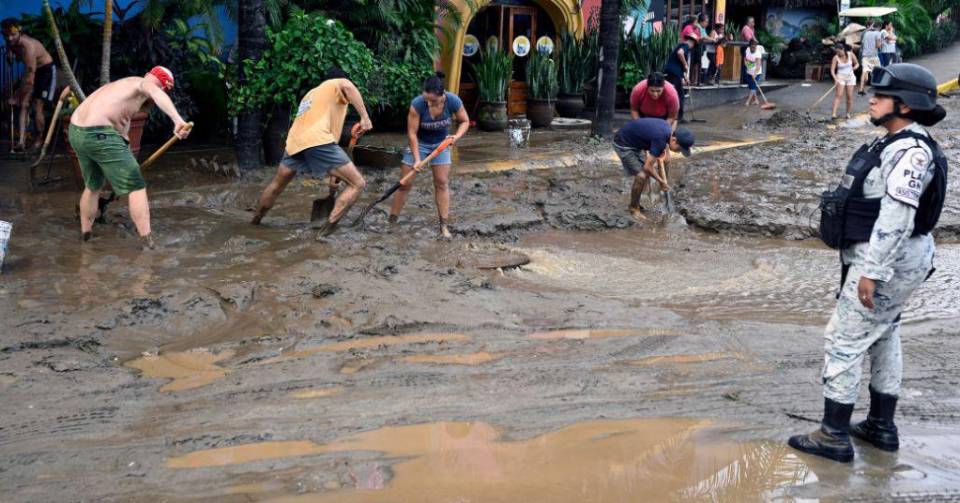 En Sayulita, en Nayarit, algunos sectores resultaron afectados por la crecida de un arroyo, que dejó enterradas viviendas. En cuanto el clima lo permitió, los pobladores intentaban rescatar sus pertenencias del fango.