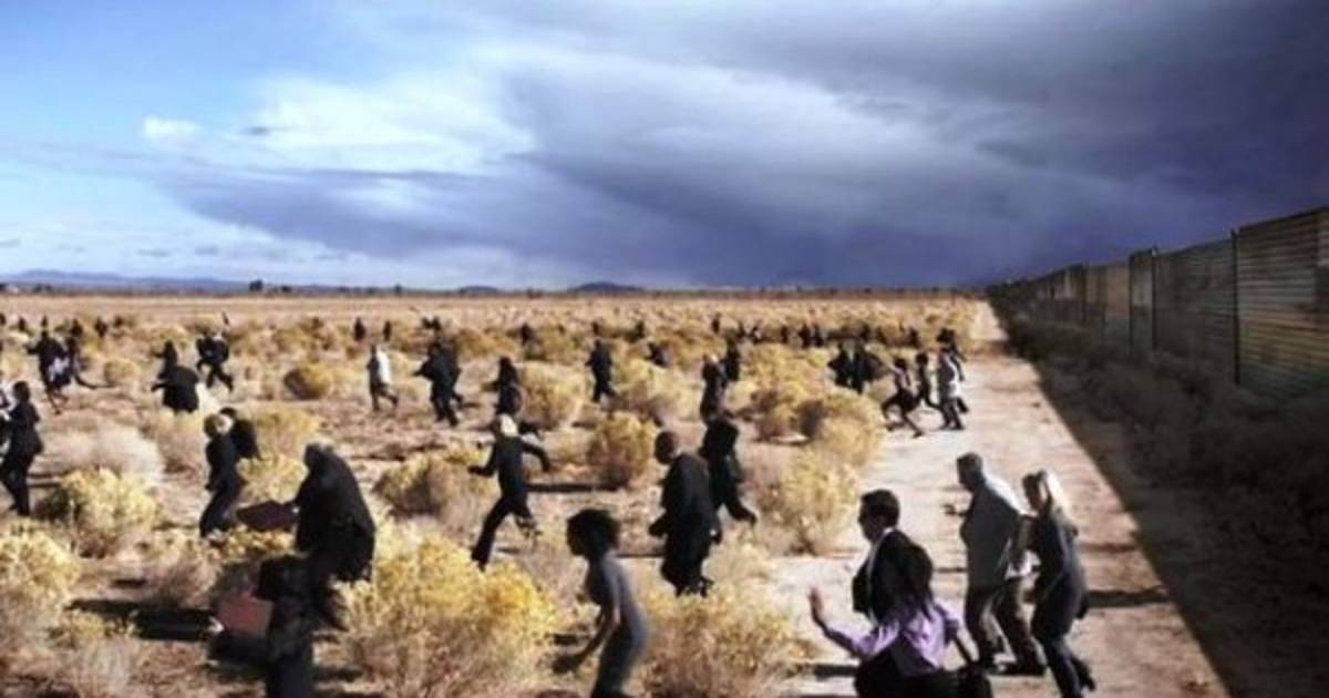 El video titulado ' Invasió n', de un minuto de duración, muestra hombres en traje y corbata y mujeres elegantemente vestidas cruzando el ' Río Grande', corriendo por el desierto y atravesando la verja que separa Estados Unidos de México en algunas partes de su frontera en común.