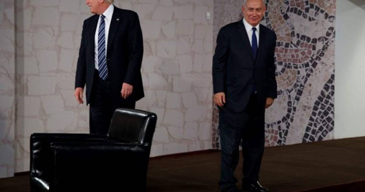 En un video subido a las redes sociales, se ve a Trump levantarse de su silla, sin darle el común apretón de mano a Netanyahu, después de que se presentan a los medios de comunicación en Jerusalén, ciudad de Israel.