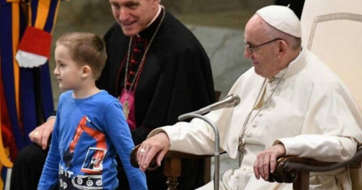 Según las fotografías de la AFP se puede ver cómo el niño tira la mano enguantada de un guardia suizo y juega detrás de la silla del papa Francisco.