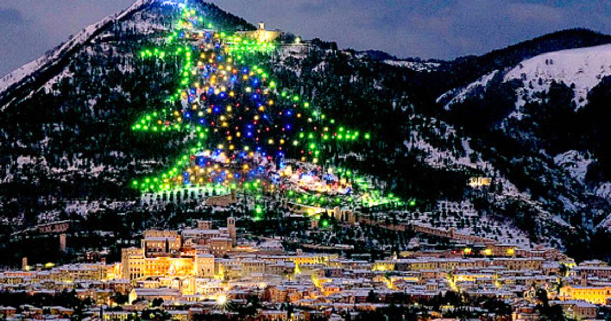 El árbol, que en realidad no es un árbol natural sino más de ocho mil cables con luces colocadas en la falda del monte Igno en Gubbio, al norte de Italia, entró al Record Guiness en 1991, por ser el árbol de Navidad más grande del mundo.