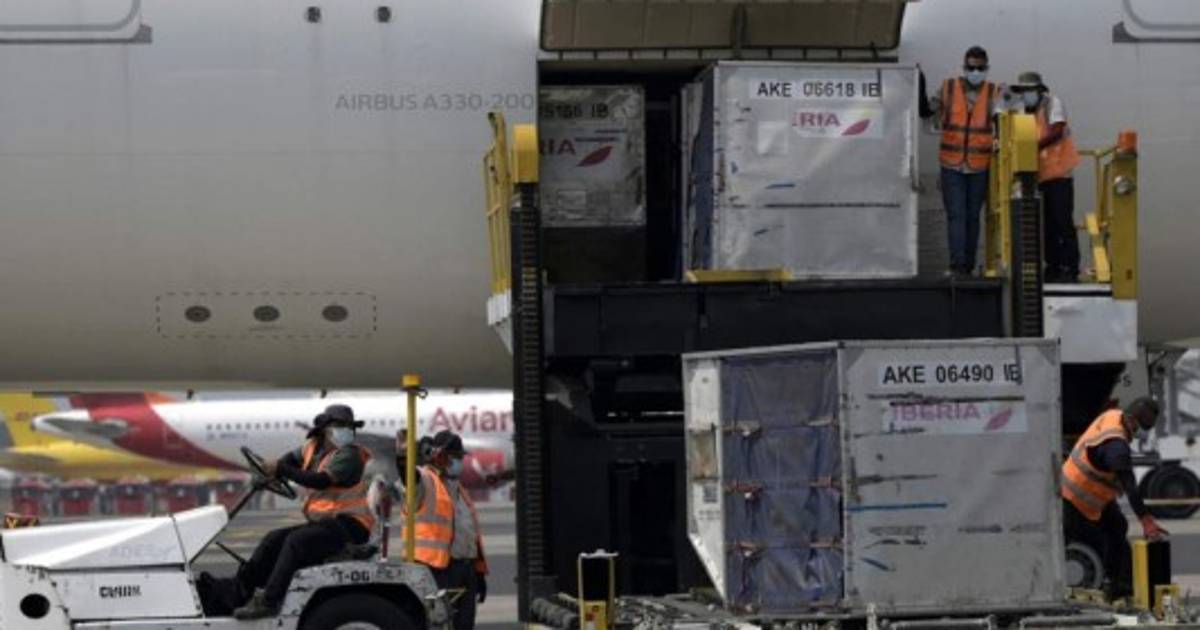 Procedentes de la India, las vacunas llegaron en un vuelo de Iberia al aeropuerto internacional Óscar Arnulfo Romero, a 44 km al sureste de San Salvador.