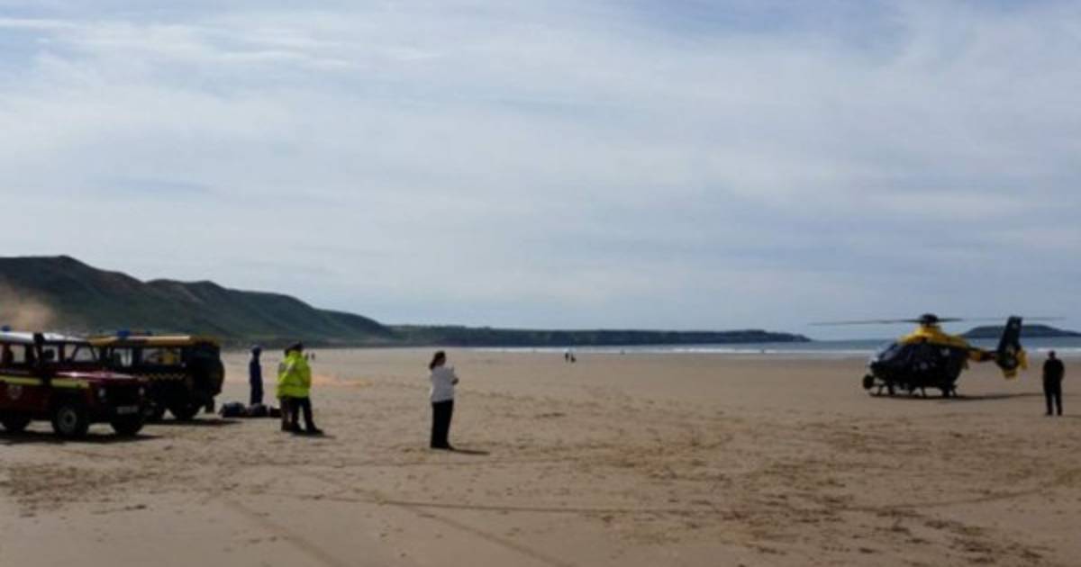 El amigo que estaba con ella le dio los primeros auxilios con la ayuda de un testigo, mientras la unidad de rescate del guardacostas Rhossili fue llamado al lugar del hecho.
