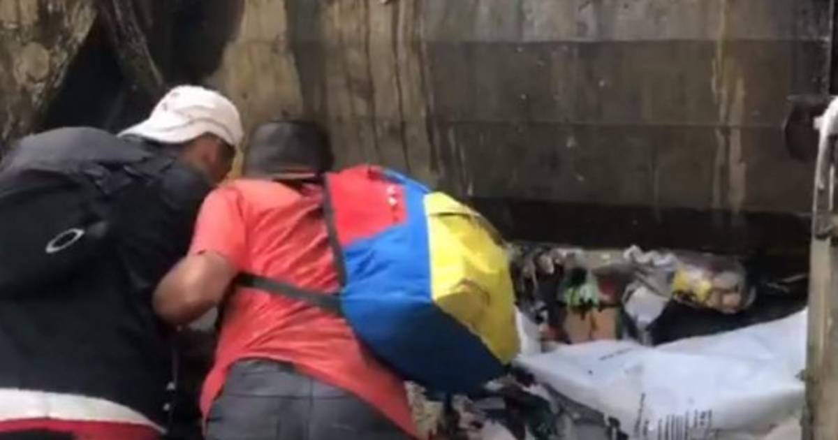 En las imágenes se ve a tres jóvenes sacando comida del camión de basura, Ramos les pregunta '¿Tienen que sacar la comida de la basura? Sí tenemos hambre', responde uno.