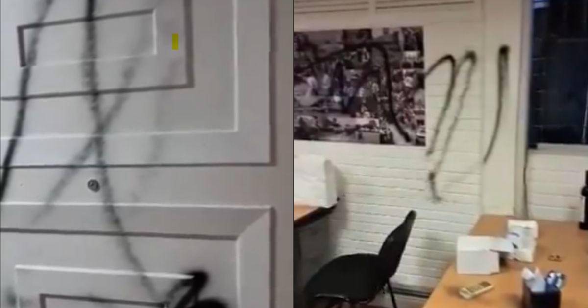 El partido divulgó videos con rayones en grafitti color negro.