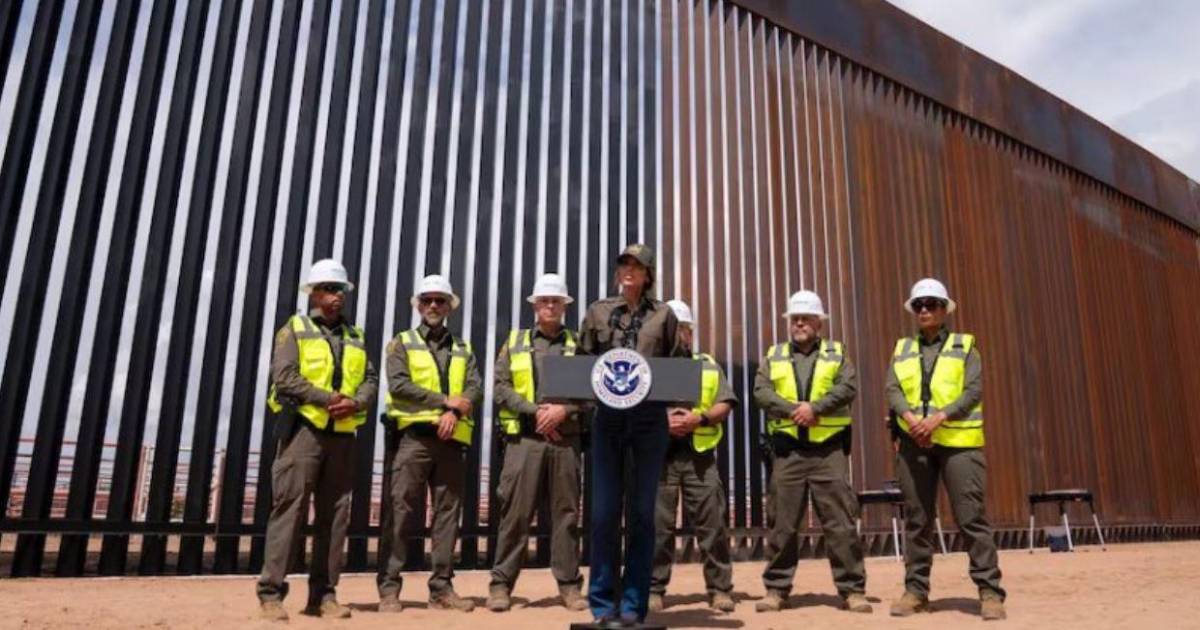 Noem estuvo el martes en una sección del muro fronterizo sur en Santa Teresa (Nuevo México), donde explicó a los agentes la nueva estrategia de la Casa Blanca para aumentar la temperatura de la estructura metálica actualmente de color marrón y, por lo tanto, dificultar su escalada, además de aumentar la vida útil del metal.
