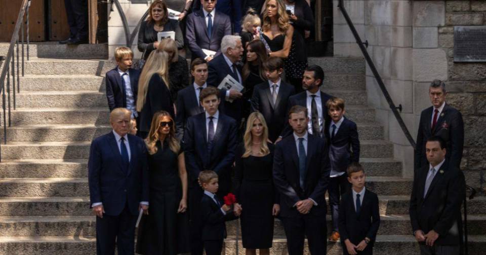 Donald Jr, Ivanka y Eric Trump, sus respectivos cónyuges e hijos, participaron junto a su padre y la actual esposa de éste Melania en el servicio religioso católico celebrado en la iglesia de San Vicente Ferrer en el residencial alto este de Manhtatan.