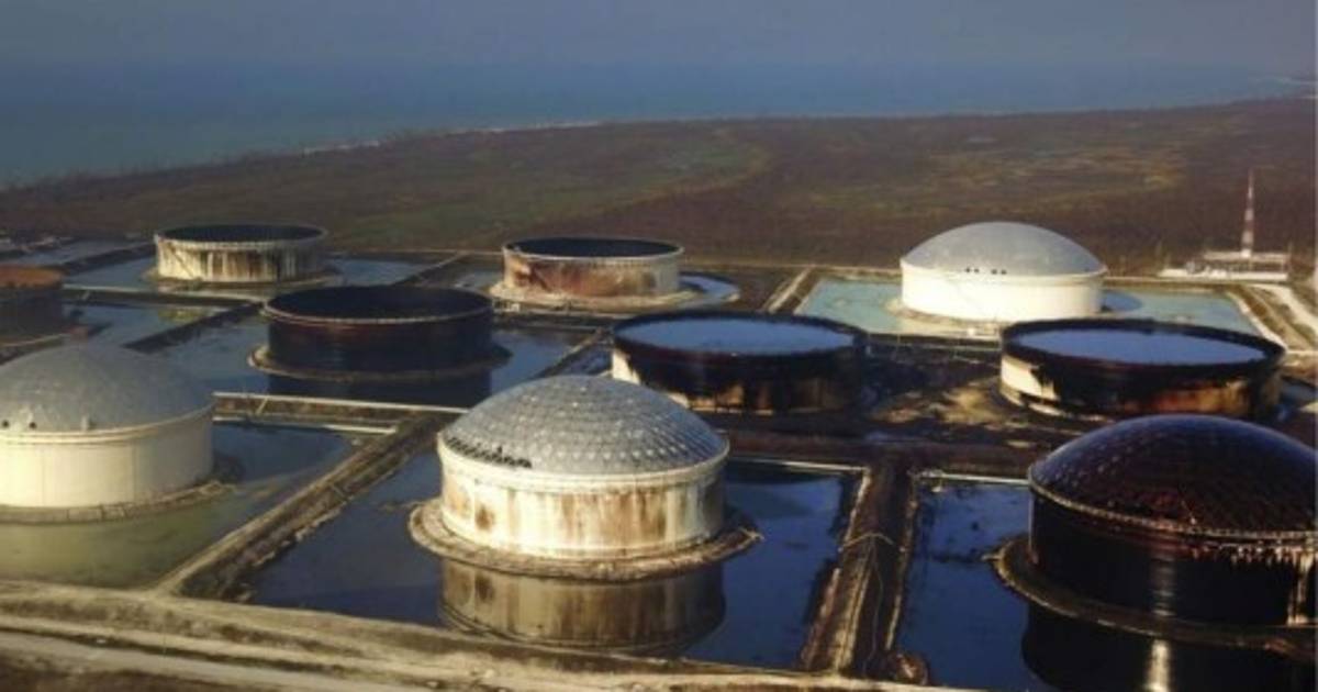 Allí, varios de los enormes tanques de petróleo están teñidos de negro por el crudo que rebosó de ellos y se extendió por un área que aún se desconoce.