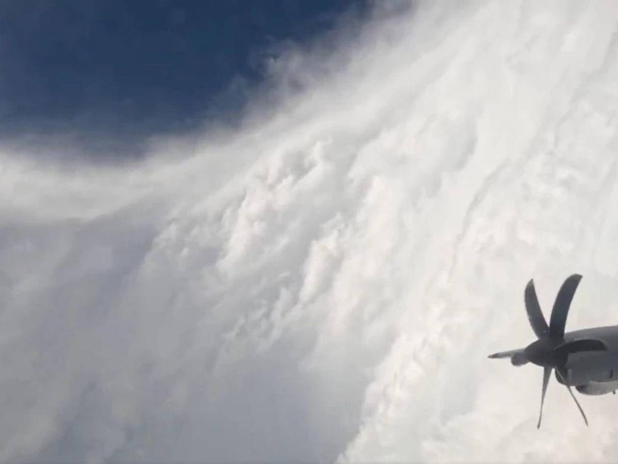 Las imágenes, captadas desde un avión de reconocimiento, revelan el inusual momento de calma en el centro del ciclón mientras sus potentes vientos devastan el Caribe.