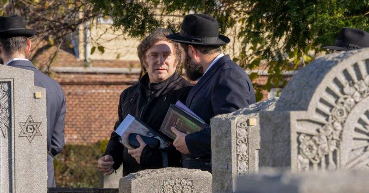 Un video de la publicación judía COLlive muestra al ultraliberal Milei llegando en medio de aplausos al Ohel del Rebe, un panteón donde están enterrados los restos del influyente rabino de origen ucraniano Menachem Mendel Schneerson, acompañado por los rabinos Mendy Kotlarsky y Simon Jacobson.
