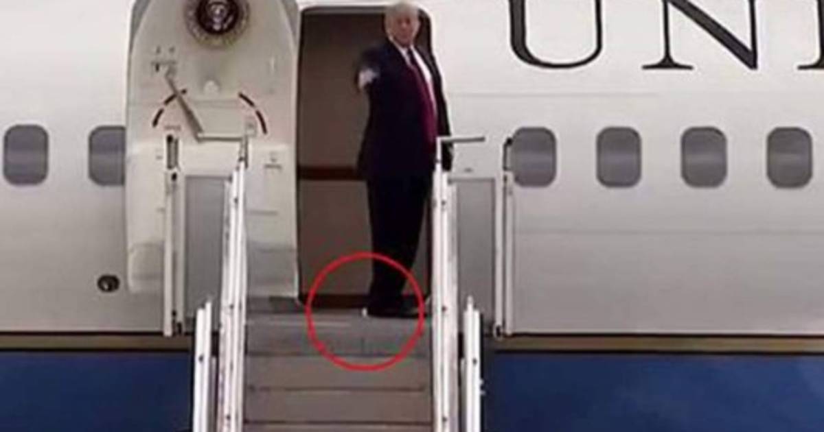 Antes de ingresar al interior de la aeronave Trump se detuvo para saludar a las cámaras, sin embargo, estas seguían muy de cerca sus pasos, pues algo blanco resaltaba en su caminar.