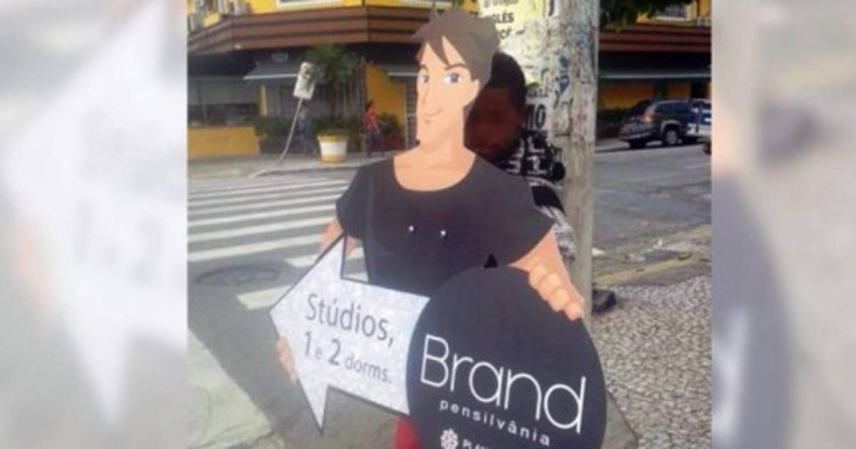 El niño de color, de aspecto humilde y de corta edad contrasta con el 'hombre cartón' que sostiene hasta 9 horas diarias caminando por las calles de ese barrio de clase alta brasileño. La publicidad expone a un joven blanco, rubio y de ojos claros.