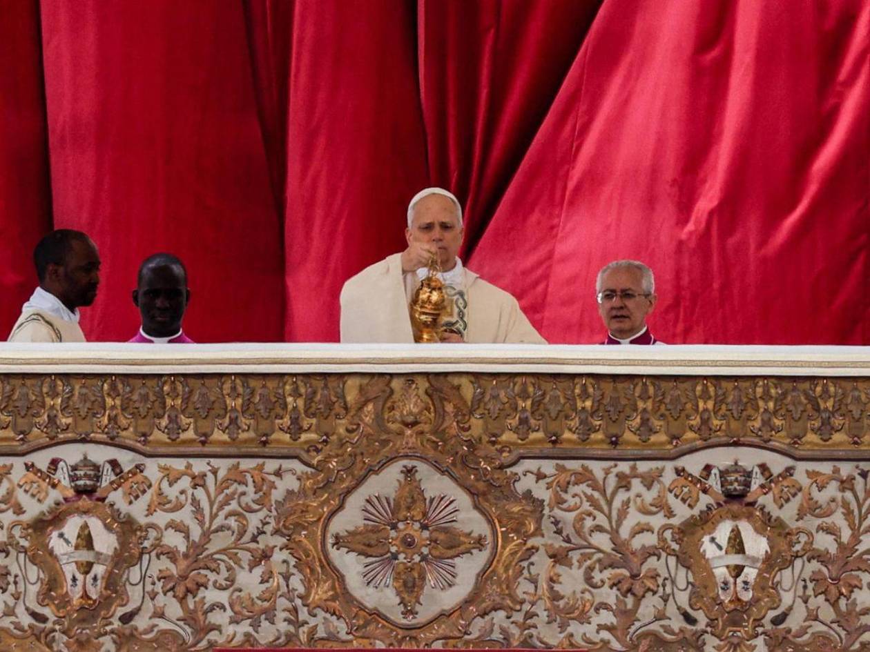 León XIV rezó en silencio en este sugestivo lugar y ante los símbolos que lo representarán. Después procesionó con su báculo pastoral hasta la plaza, acompañado por una larga fila de clérigos encabezada por los diáconos que alzaban el Evangelio.