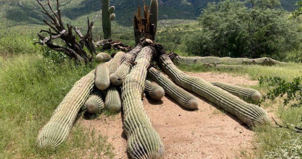 La pérdida de este enorme e icónico Saguaro de 200 años en el sendero de las Ruinas de Romero, con vista al arroyo Sutherland en el Parque Estatal Catalina, en Tucson, es un cambio que los visitantes regulares del parque no pueden obviar”, dijo en Facebook la administración de los parques estatales de Arizona.