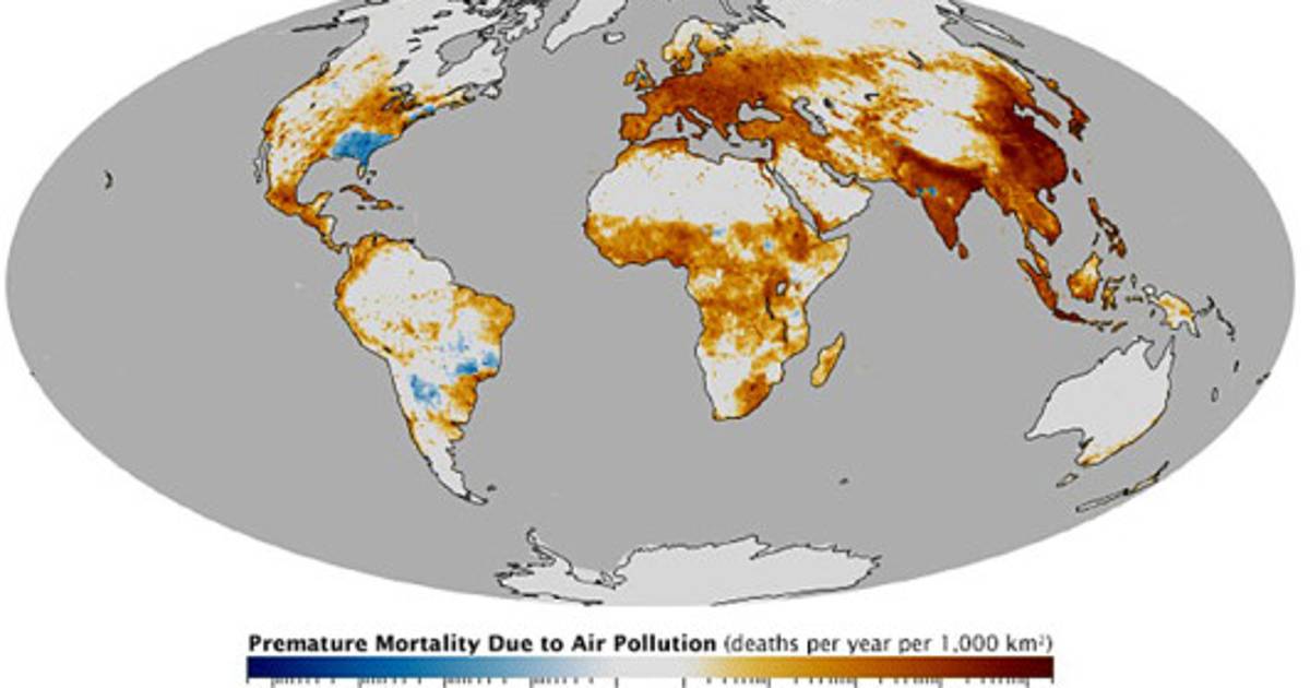 La Administración Nacional de la Aeronáutica y del Espacio (NASA) publicó un mapa que señala los países con más muertes prematuras por contaminación.