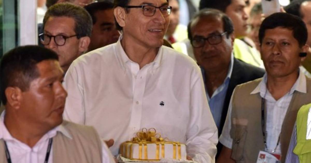 A su llegada al aeropuerto limeño, Vizcarra fue recibido por decenas de seguidores con una torta de cumpleaños con velas con el número 55, quienes le obsequiaron una camiseta de la selección peruana de fútbol que clasificó al Mundial de Rusia-2018.