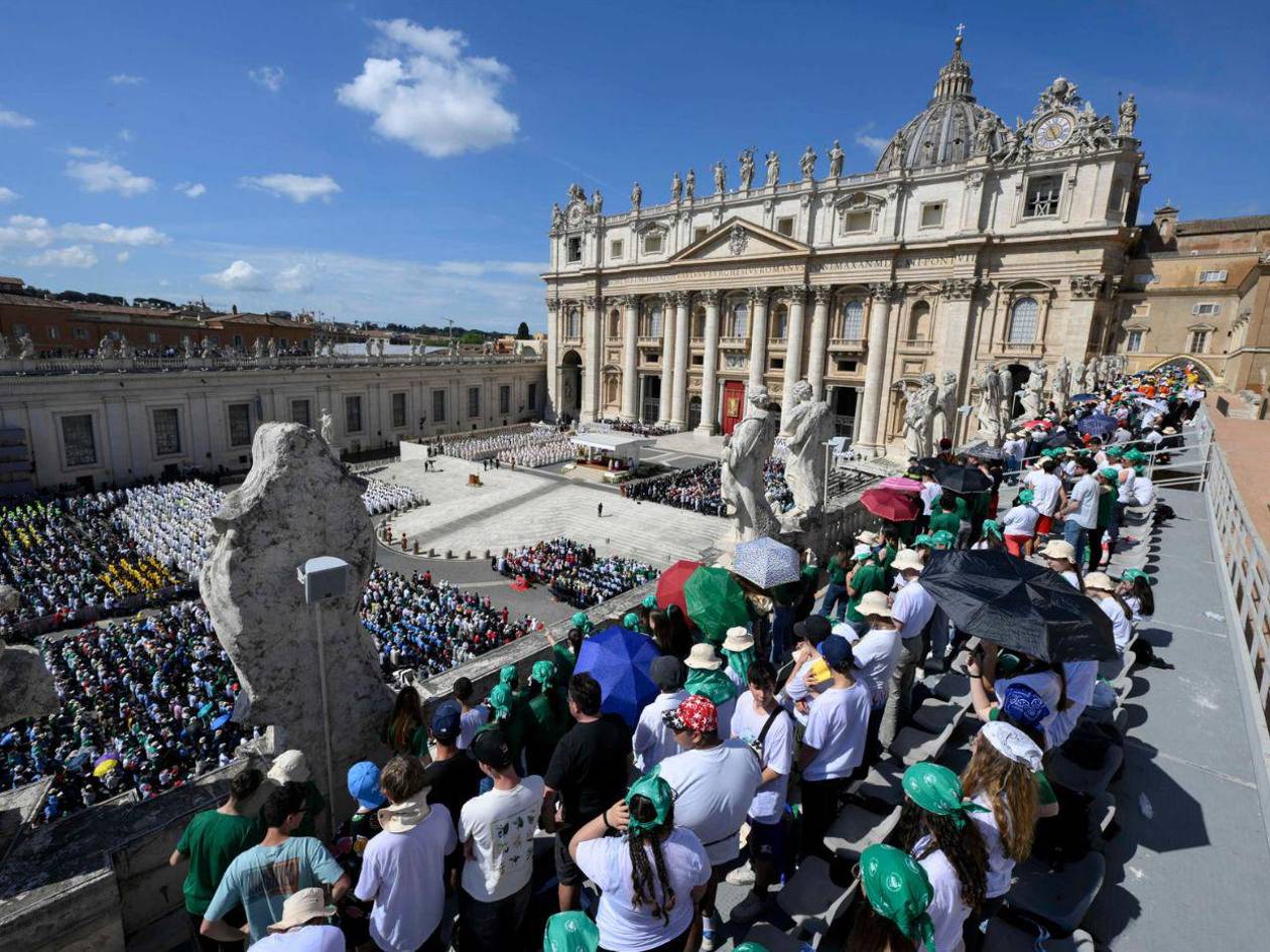 La masiva presencia de jóvenes en la misa se debe también a la celebración del Jubileo de los Adolescentes, que en muchos casos habían planeado ya viajar a Roma para la canonización del italiano Carlo Acutis, conocido como el 'santo millenial', y pospuesta tras el fallecimiento del papa.