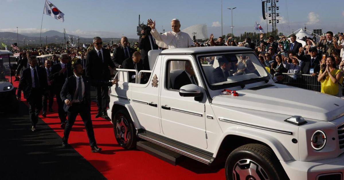 El pontífice ha aterrizado en el lugar en un helicóptero a las 7.40 hora local (5.40 GMT) y después ha recorrido el campamento en su papamóvil para saludar a los presentes.