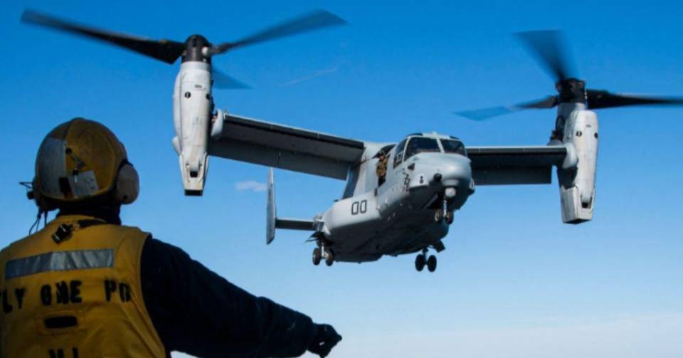 El Osprey es un avión llamado de “despegue y aterrizaje vertical” que tiene alas giratorias que pueden ser dispuestas hacia arriba para tener la maniobrabilidad similar a la de un helicóptero, o hacia adelante para darle el avance de un avión.