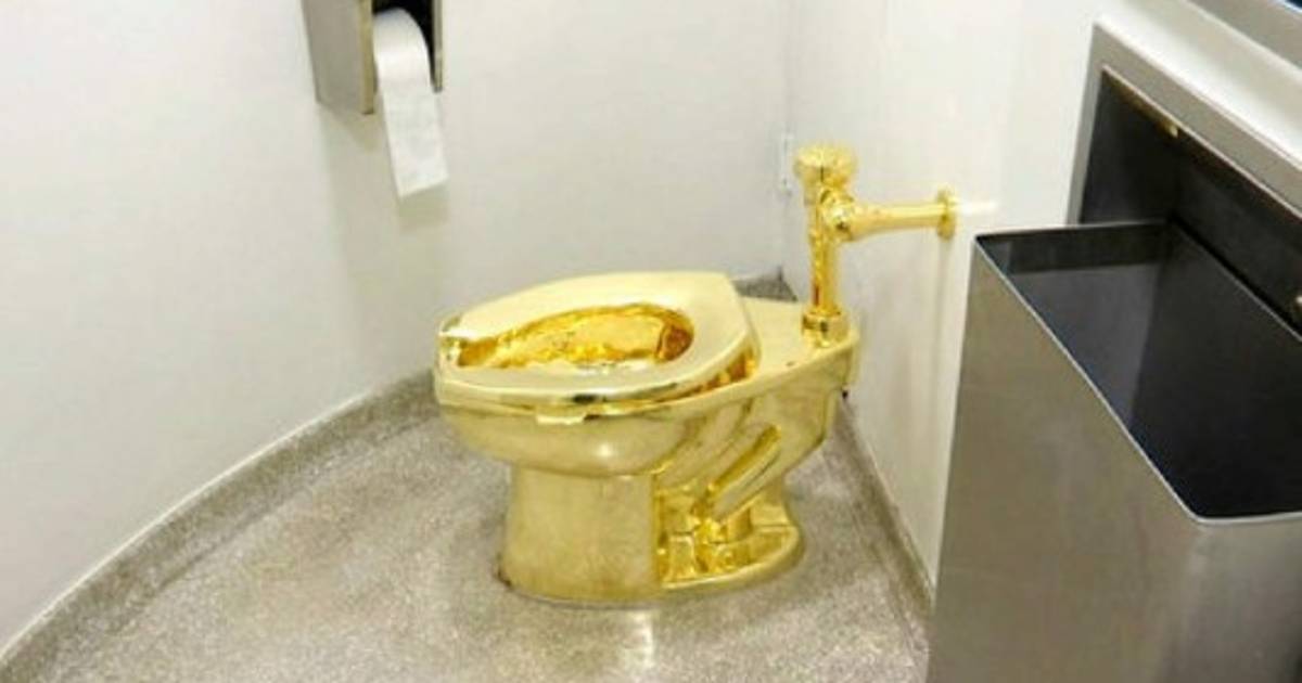El inodoro de 18 quilates titulado 'Estados Unidos', es una crítica de Maurizio Cattelan a los instintos codiciosos de la nación. Se calcula que su valor supera el millón de dólares.