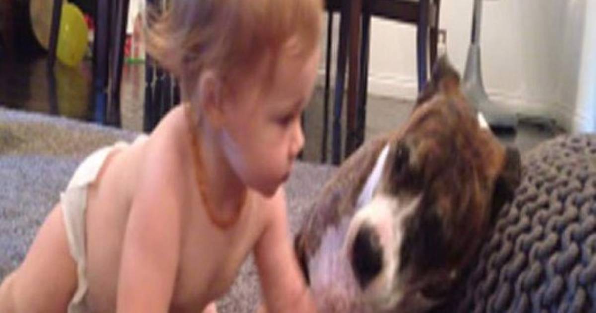 Nadie puede resistirse a estos dos pequeños amigos: una bebé y un perro pitbull muy amoroso. Ambos fueron captados en el momento preciso.