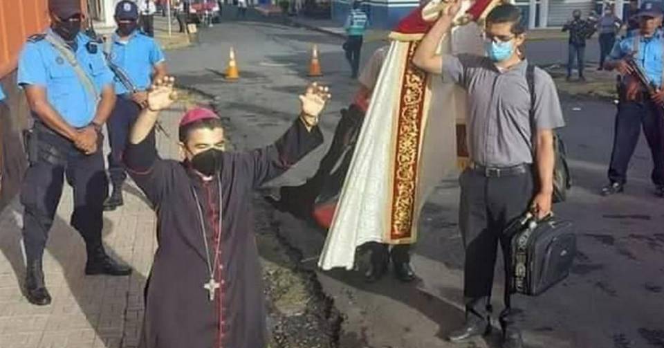 “Como si nosotros fuéramos delincuentes”, reclamó durante una eucaristía que luego logró celebrar en la curia de Matagalpa, en el norte de Nicaragua.