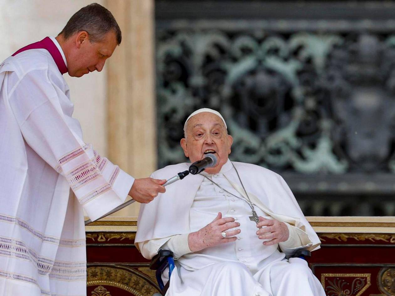 Ciudad del Vaticano.- El papa Francisco, que sigue convaleciente por sus problemas de salud, apareció sin que estuviera previsto ante los fieles en la Plaza de San Pedro del Vaticano, al término de la misa del Domingo de Ramos.