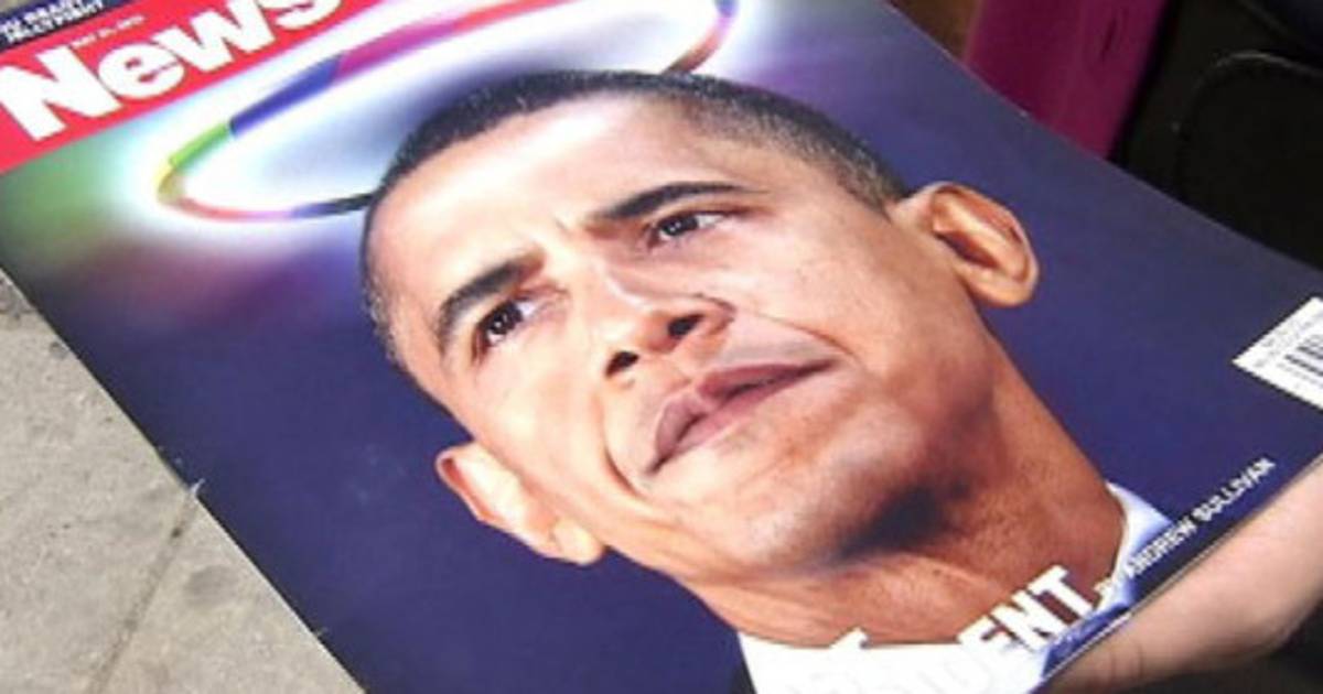 Obama aparecía retratado con una aureola angélica con los colores del arcoíris (la bandera del arcoíris es símbolo de la comunidad gay) tan solo días después de convertirse en el primer presidente de Estados Unidos en apoyar los matrimonios entre personas del mismo sexo.