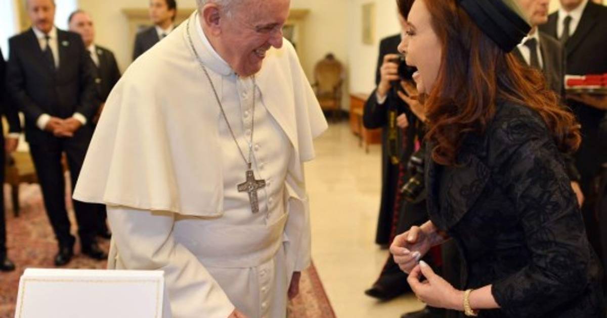 Kirchner, que caminaba con dificultad debido a la bota ortopédica, se excusó con el pontífice por el retardo debido al accidente sufrido.
