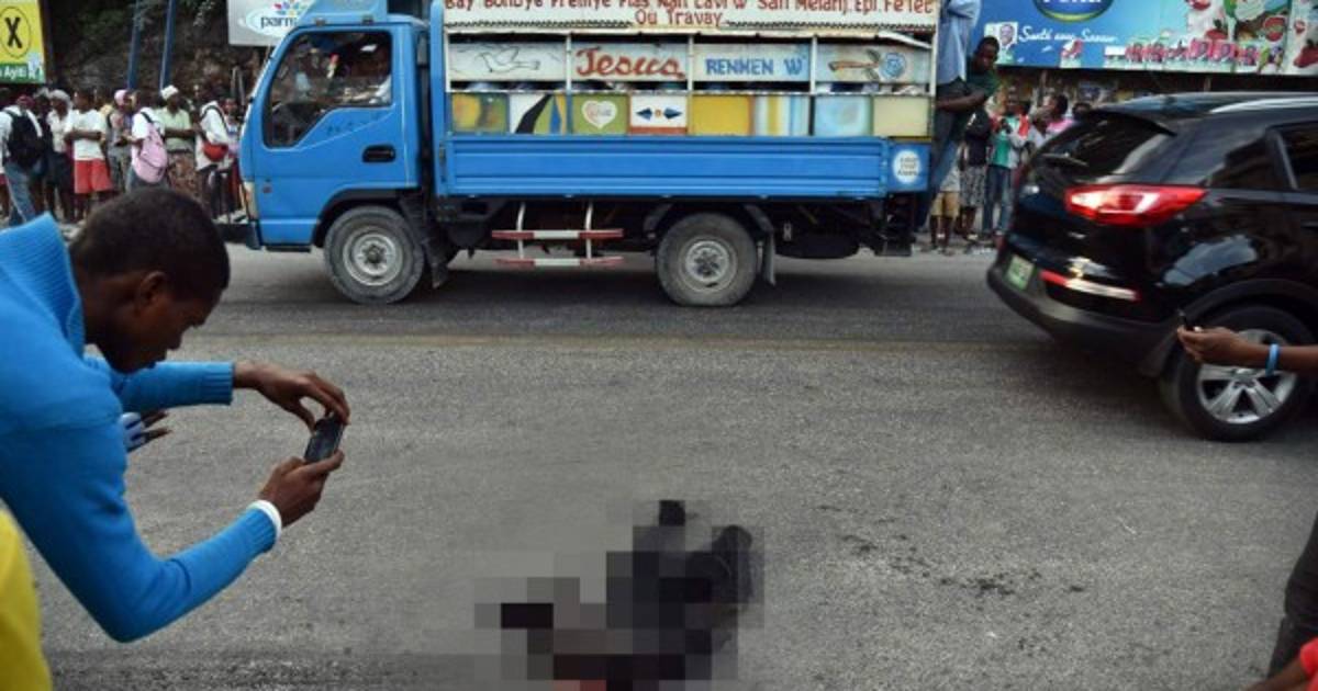 'Fue poco antes de la una de la mañana. Los vecinos le preguntaron a este tipo si conocía a alguien en la zona. No conocía a nadie, y tenía un pañuelo rojo atado a su pierna, signo de que pertenecía a una asociación de delincuentes', relató un manifestante, Fritzner Jules, delante del cuerpo del hombre, que yacía carbonizado sobre la calzada.