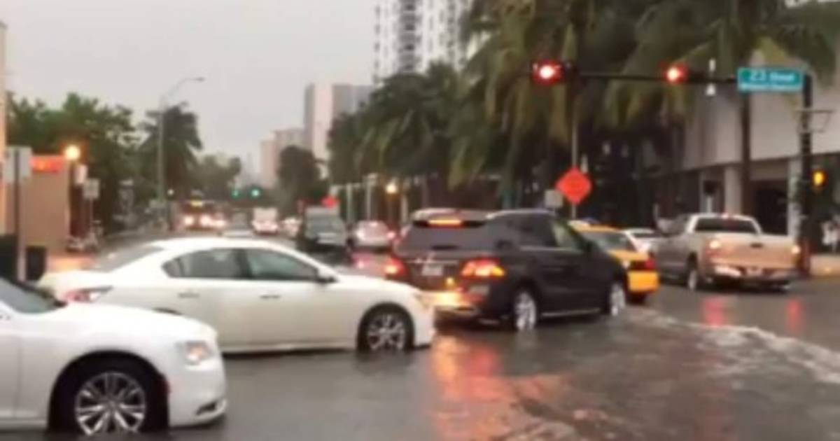 Después de fuertes aguaceros las calles de Miami Beach, Estados Unidos se inundaron este martes según reportes del Servicio Meteorológico Nacional de Miami.