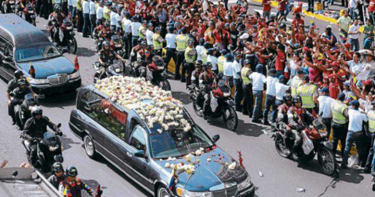 Con el féretro cargado por ocho húsares, el cuerpo del líder venezolano Hugo Chávez dejó la capilla ardiente y recorre las calles de Caracas hasta un simbólico cuartel, en el último adiós al fallecido mandatario a un mes de las elecciones para elegir a su sucesor.