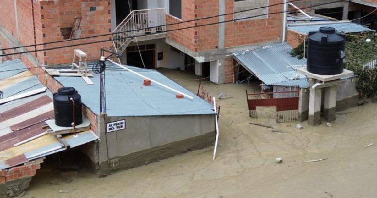Una intensa lluvia registrada la tarde y noche del sábado provocó la crecida del río Pasajahuira que después se convirtió en una riada con lodo que llegó a dos urbanizaciones de Bajo Llojeta, dejando casas, vehículos y algunas personas atrapadas.