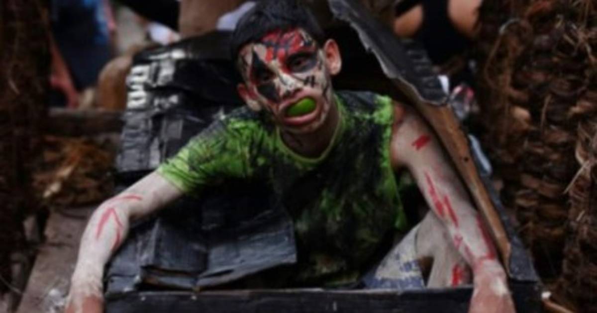 Disfrazados de esqueletos y haciendo rodar tenebrosas carretas, jóvenes salvadoreños rinden tributo a la muerte con el bullicioso y tradicional desfile de La Calabiuza (calavera) en el día de Todos los Santos en Tonacatepeque, un pueblo rodeado de violentas pandillas, 25 km al norte de San Salvador.