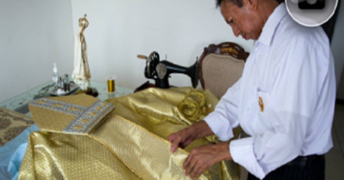 El sastre, viudo desde hace nueve años, narró que comenzó a coser desde niño por necesidad de trabajar y que con el paso del tiempo a los 15 años comenzó a laborar en el Ejército confeccionando trajes camuflados para militares y más tarde pasó a diseñar ropas religiosas.