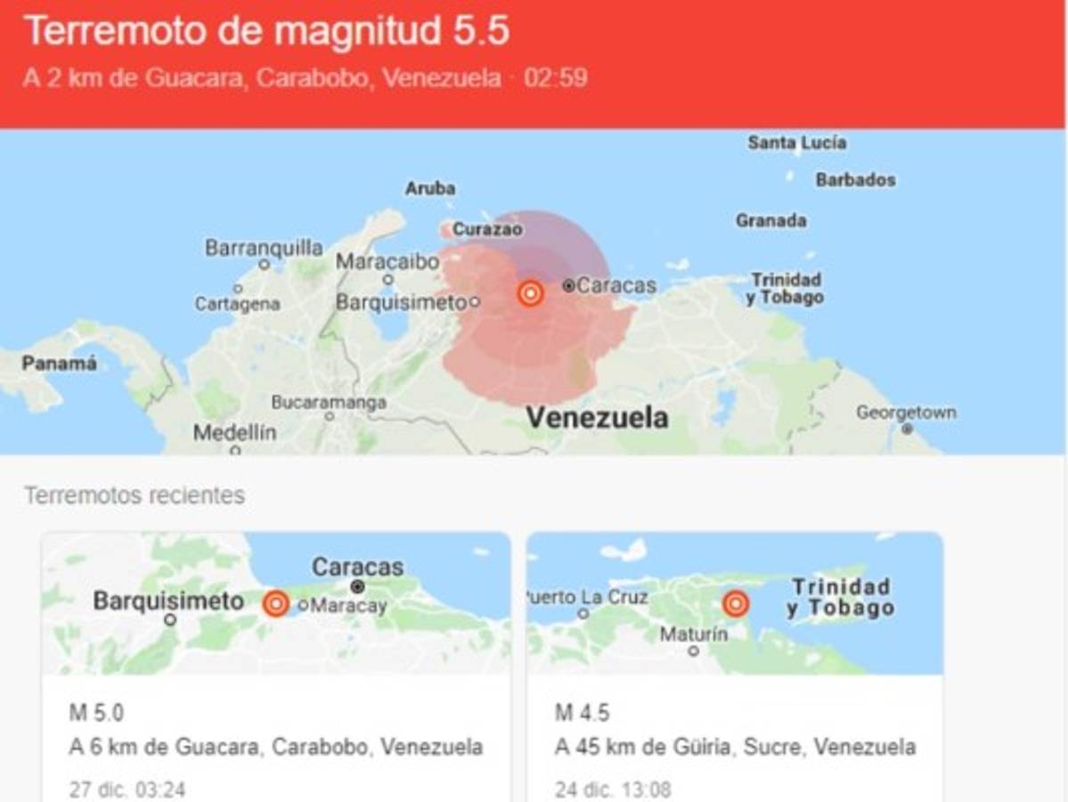 El temblor tuvo su epicentro en el estado de Carabobo, a unos 5 kilómetros al noreste del poblado de San Diego, de acuerdo con el Servicio Geológico de Estados Unidos. Se produjo a las 4:59 a.m. y tuvo una profundidad de 10 kilómetros.