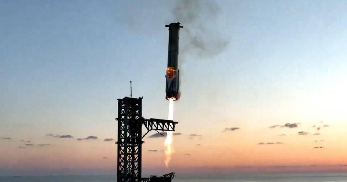 El megacohete consiguió poner en órbita el módulo principal con la ayuda de los 39 motores Raptor de su primera fase, que en un hito de la ingeniería espacial sin precedentes logró regresar desde la estratosfera, realizar una desaceleración controlada y posarse en la misma plataforma de lanzamiento para ser recuperada por los “chopsticks” (palillos), una grúa que atrapa esa parte de la nave para volverla a usar.