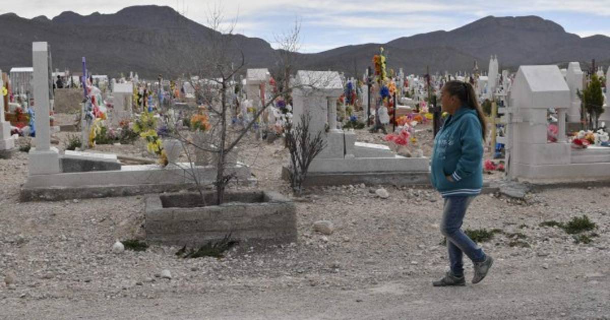 Y todas las semanas visita su tumba en el cementerio local, donde los colores chillones de flores y coronas de plástico contrastan con la aridez del desierto.