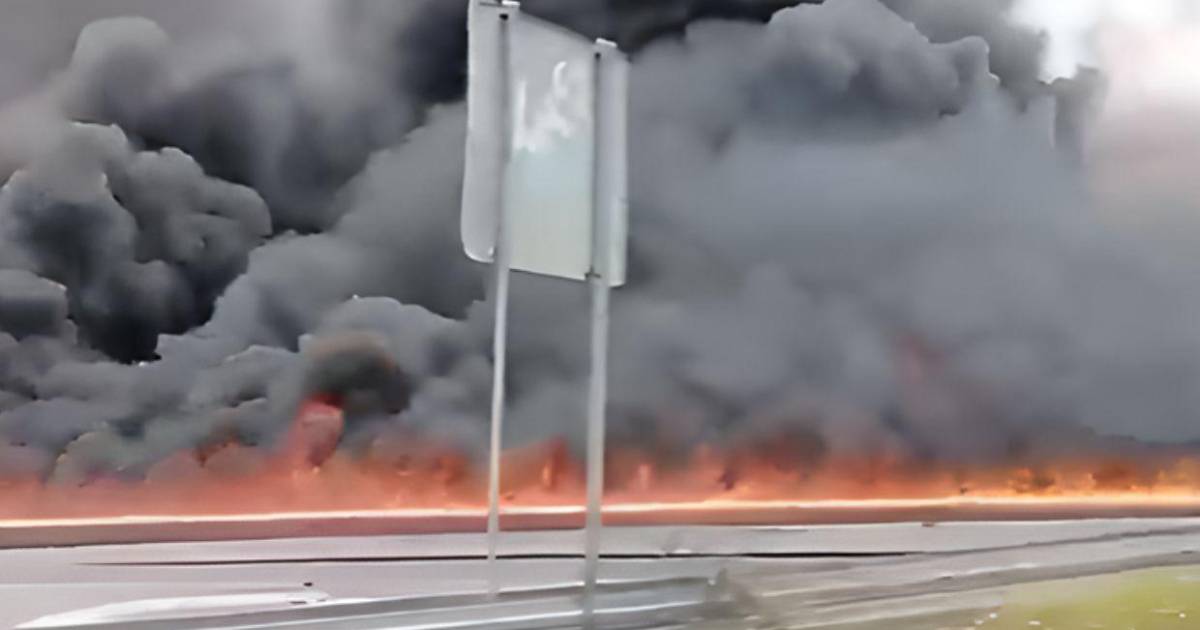 Videos que circulan en redes sociales muestran una columna de humo de gran magnitud, visible a varios kilómetros de distancia.