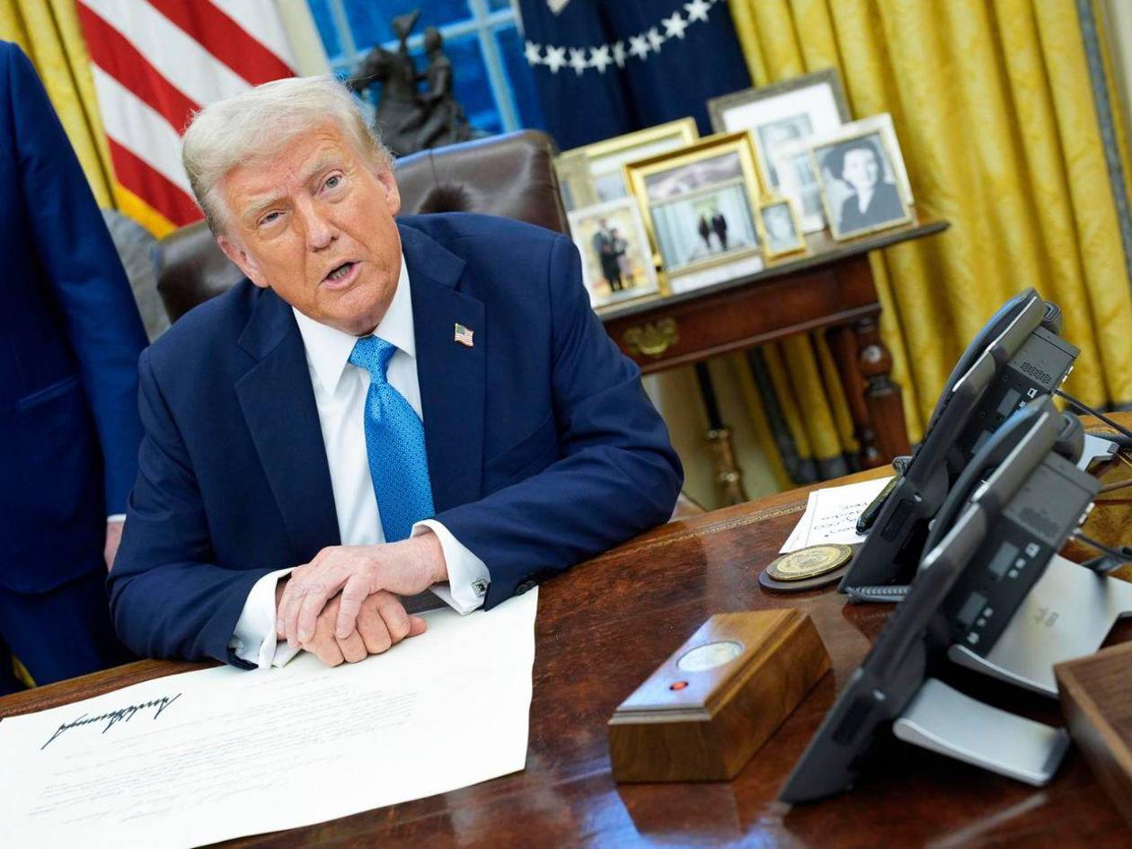 Trump firmó ayer tres órdenes ejecutivas con las que cumplía sus amenazas de imponer aranceles del 25 % a Canadá y México y del 10 % a China, unas medidas que entrarán en vigor el martes y a las que se espera que estos países respondan con represalias comerciales.